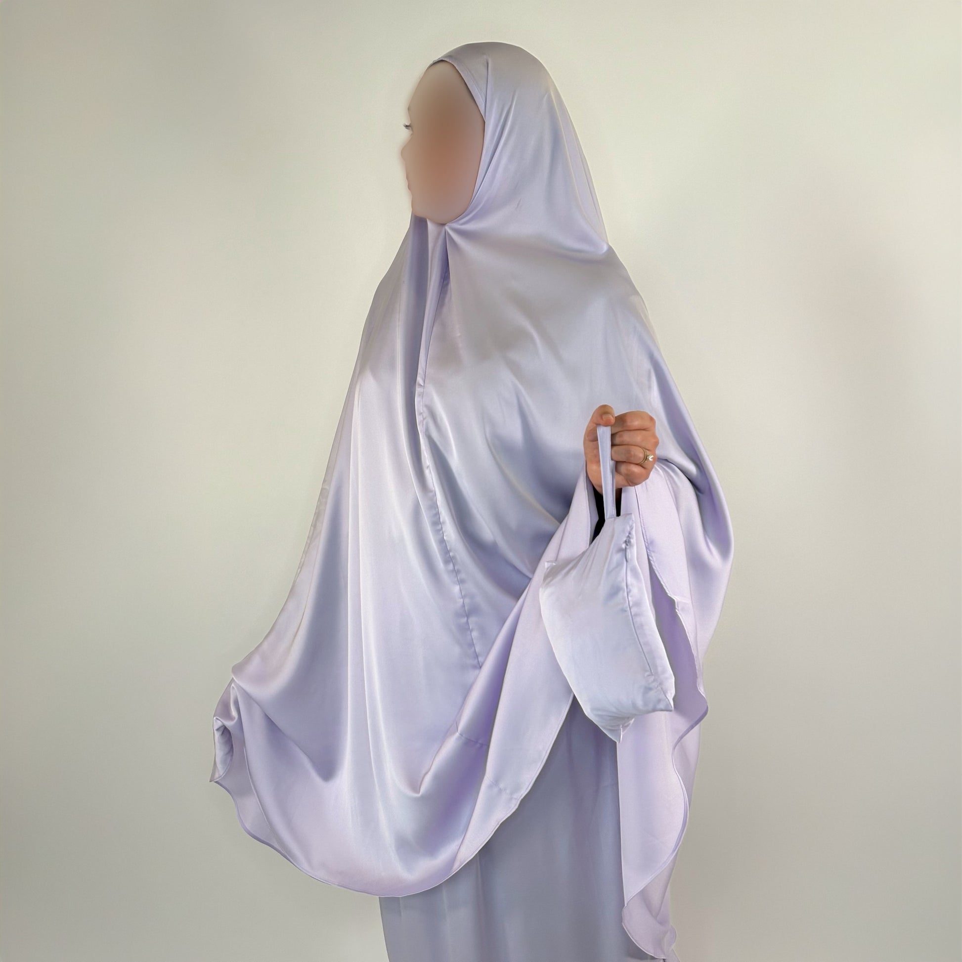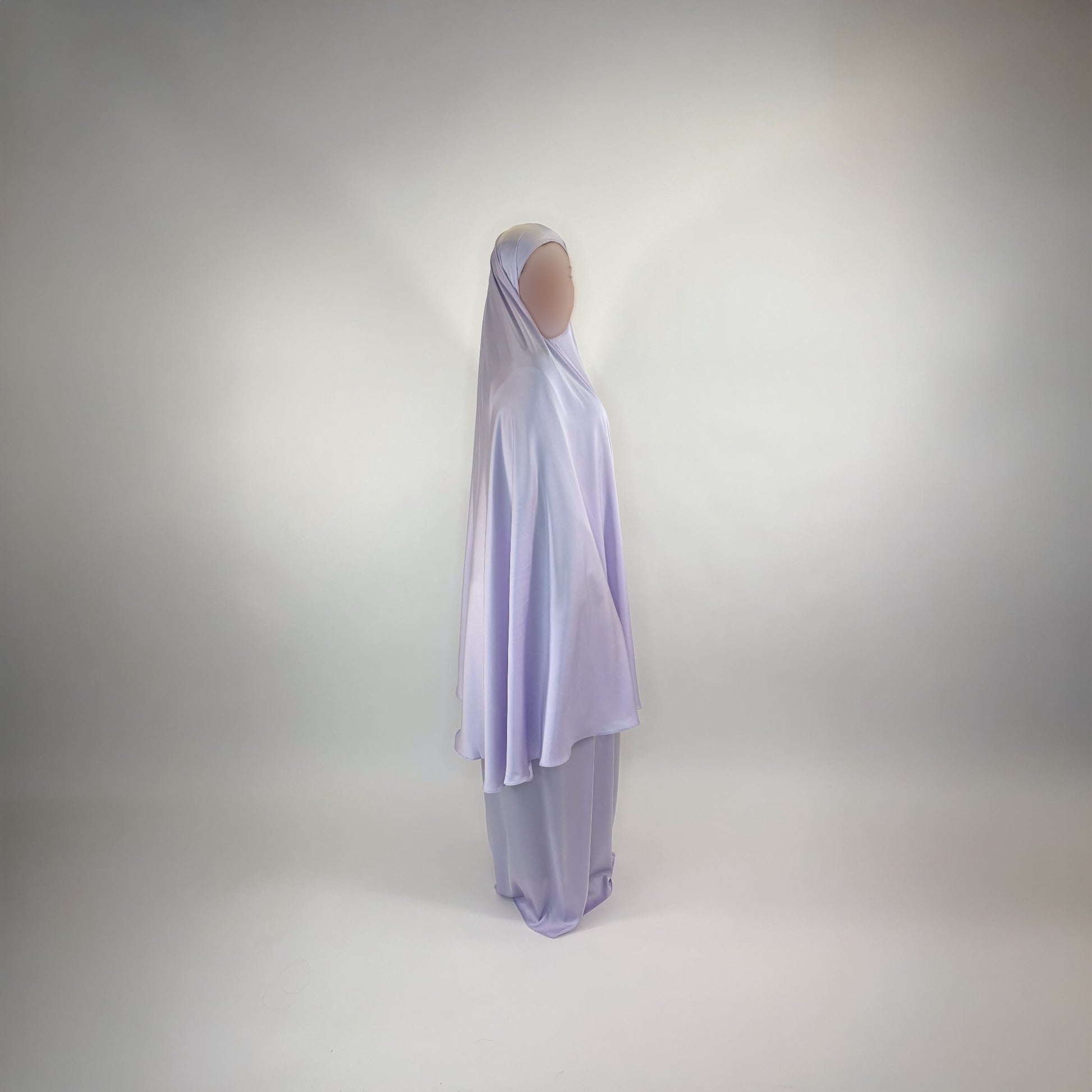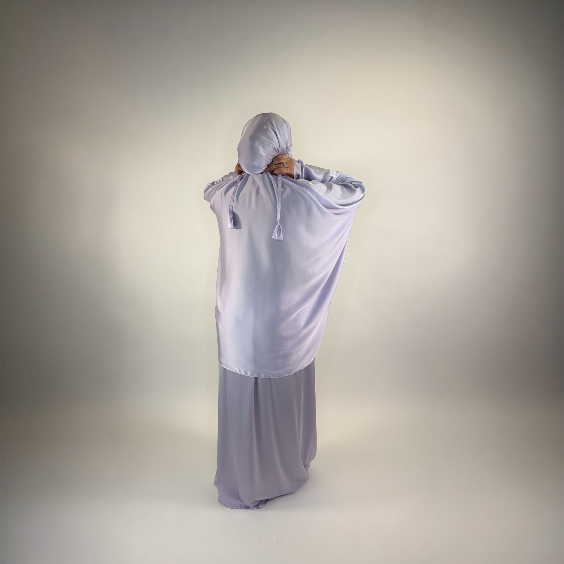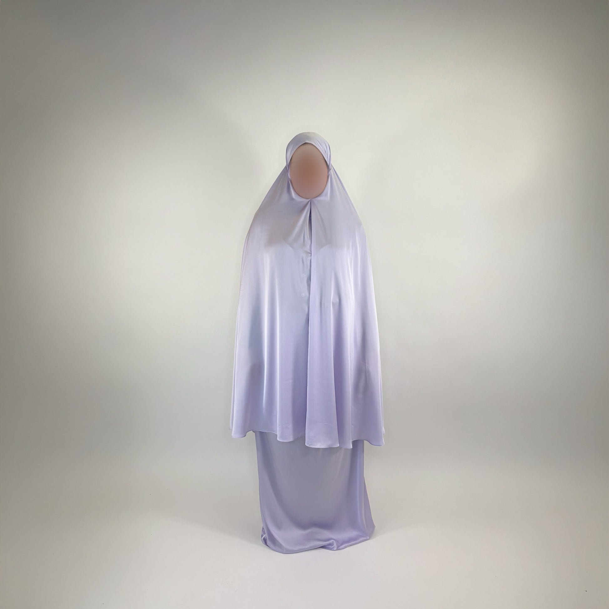 Each set is made from smooth, lightweight satin that drapes effortlessly over the body, allowing you to pray without distraction. The soft, pearlescent sheen adds a touch of understated elegance while remaining modest and breathable — ideal for daily salah as well as special moments of worship.