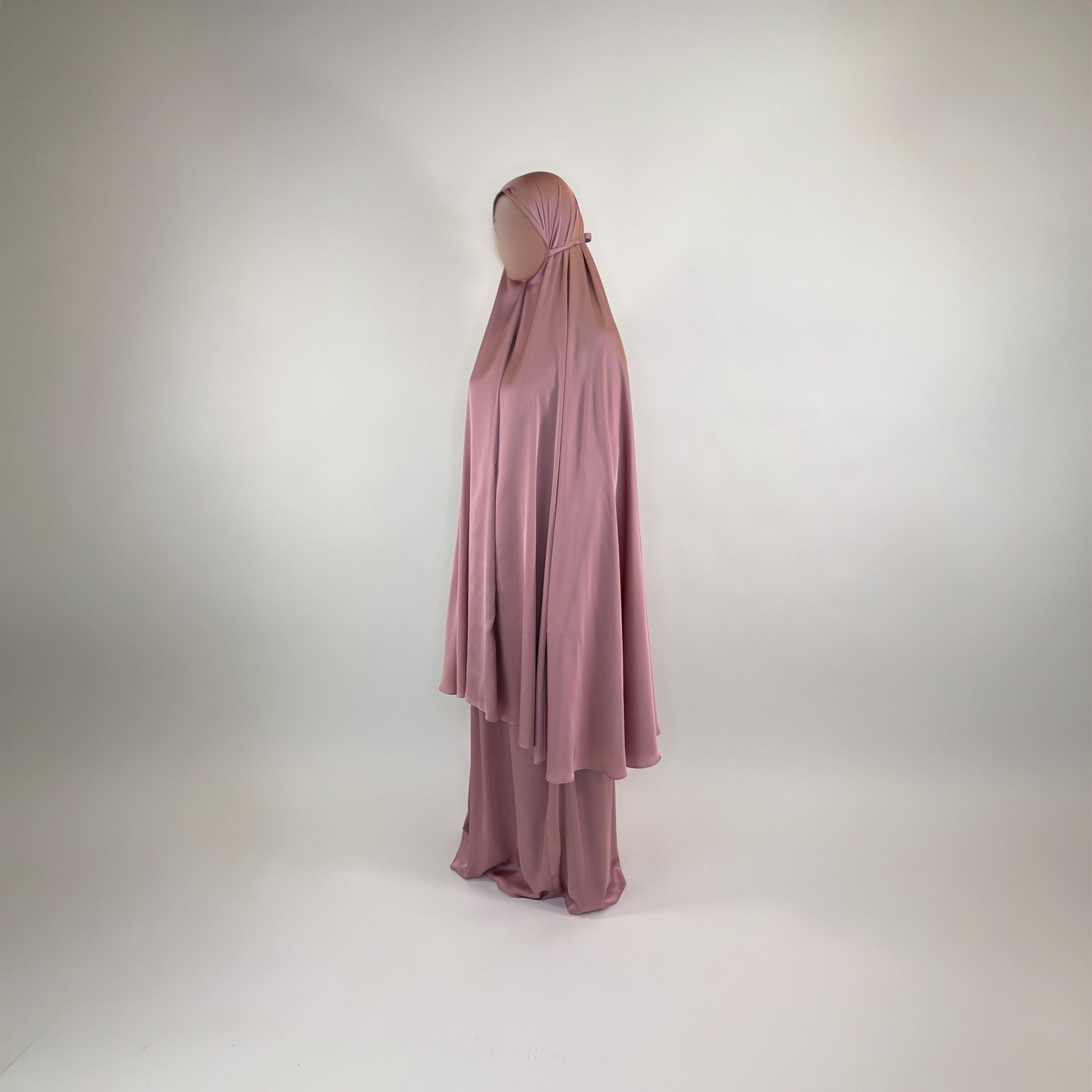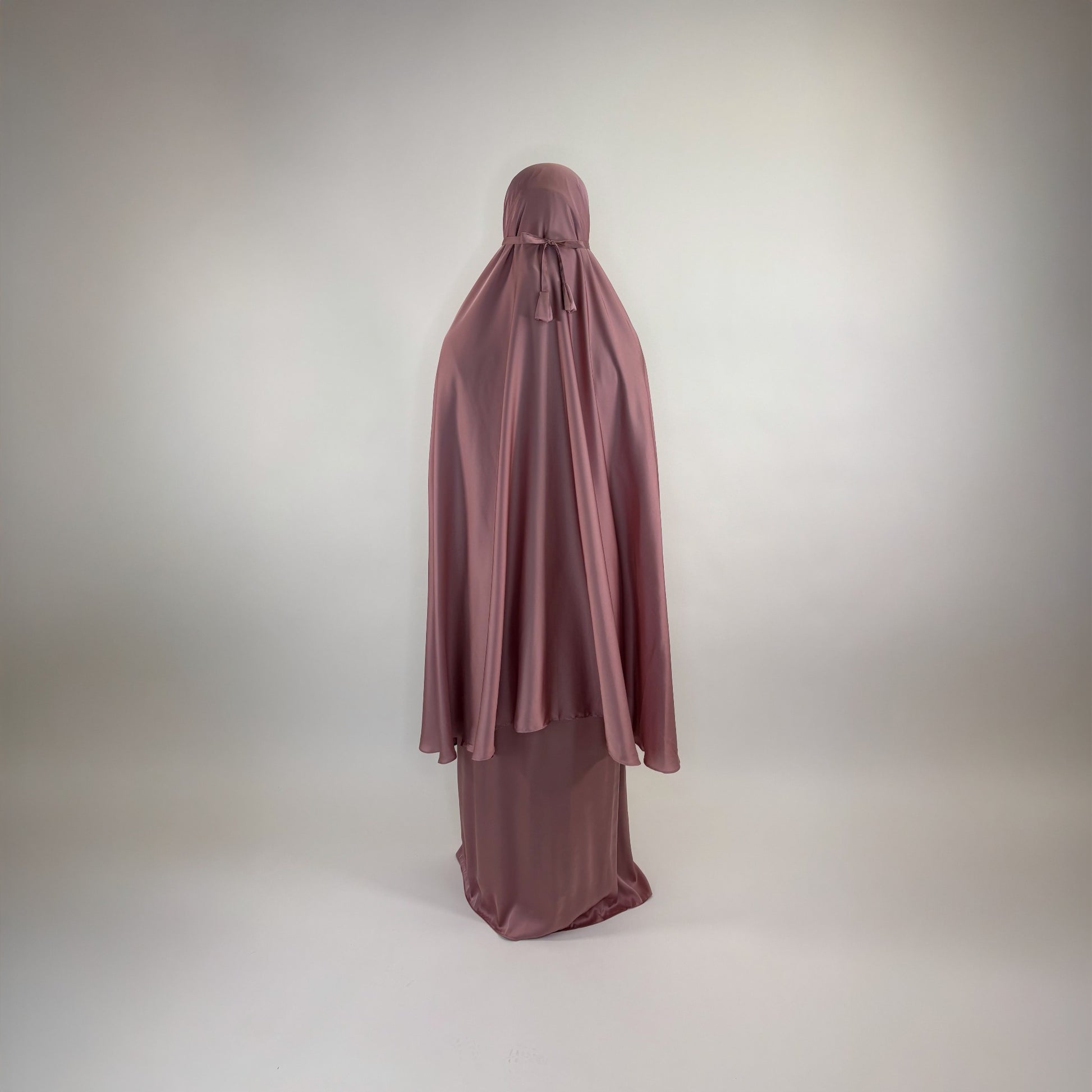 Each set is made from smooth, lightweight satin that drapes effortlessly over the body, allowing you to pray without distraction. The soft, pearlescent sheen adds a touch of understated elegance while remaining modest and breathable — ideal for daily salah as well as special moments of worship.